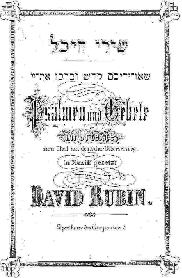 David Rubin wurde am 1.2.1837 in Gewitsch (Jevičko) in Mähren geboren. Er begann in jungen Jahren das Studium an der Violinklasse des Prager Konservatoriums. Als Neunzehnjähriger wurde er Dirigent des Theaterorchesters zu Baden und Ödenburg. 1861 wurde er als Konzertmeister an das Prager Ständetheater engagiert. 1864 eröffnete Rubin in Prag eine vielbesuchte Musikschule, die er fast vierzig Jahre erfolgreich leitete. Daneben leitete er auch eine Kantoren-Bildungsanstalt. Mit David Popper, dem berühmten Cellisten, gründete er den deutschen Männergesangsverein „Arion“ und den Musikverein „Harmonie“. 1869 wurde Rubin Chordirektor am „Neuen jüdischen Tempel“ in Prag (der links abgebildeten Spanischen Synagoge) und Chordirigent des „Vereins für geregelten Gottesdienst der Israeliten“. Rubin leitete auch eine 1882 gegründete Kantorenschule. Als Komponist versuchte sich Rubin erst auf dem Gebiete der weltlichen Musik, wandte sich aber später ausschließlich der Pflege der Synagogalmusik zu. Die Gesänge aus David Rubins mehrbändiger Sammlung Schirej hechal (Tempelgesänge) waren zu Rubins Lebenszeit nicht nur in ganz Europa, sondern auch in Amerika verbreitet und wurden nicht nur in allen reformierten Synagogen, sondern auch in geistlichen Konzerten gesungen. Er starb am 31.1.1922 in Baden bei Wien.